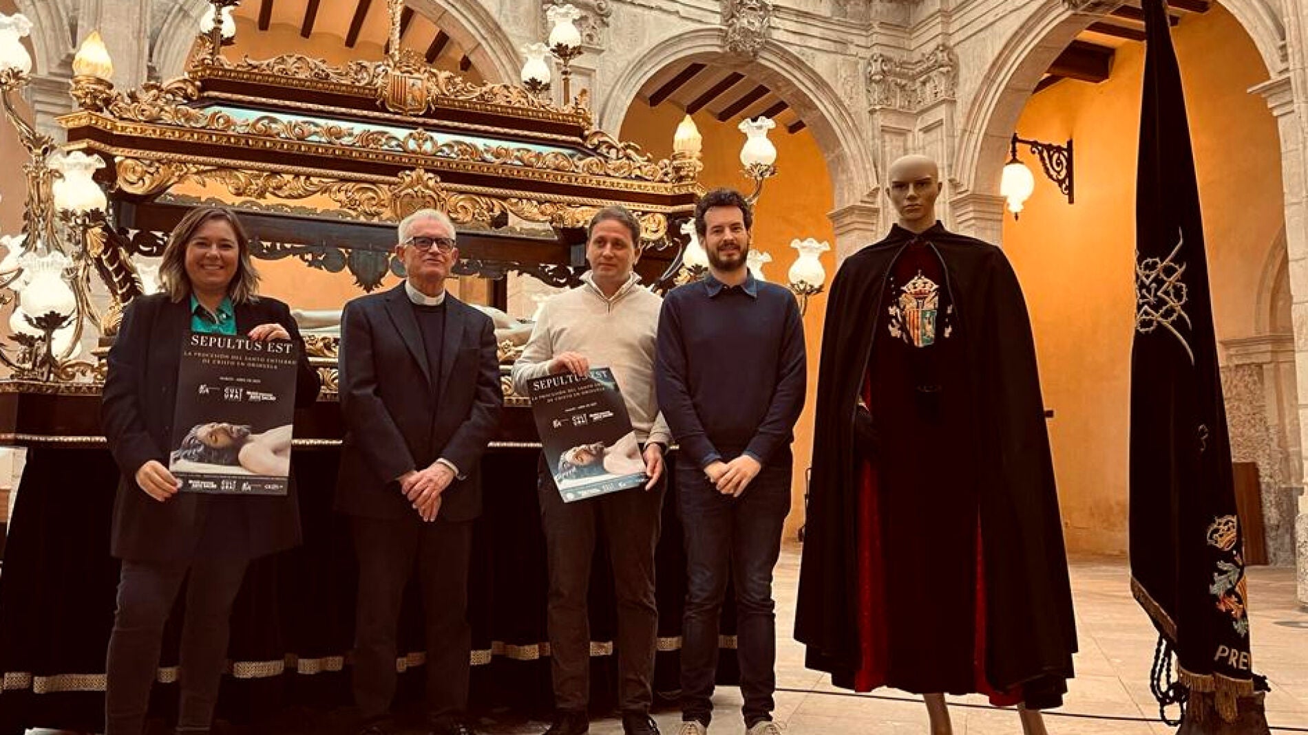 Las Concejalías de Festividades y Cultura han colaborado con el Museo Diocesano de Arte Sacro en la organización de la exposición 'Sepultus est', que podrá visitarse en el claustro del museo del 9 de marzo al 1 de abril. La muestra ha sido presentada hoy por el concejal de Festividades, Antonio Sánchez; la concejala de Cultura, Mar Ezcurra; el director del museo, José Antonio Martínez, y el conservador del museo, Mariano Cecilia.