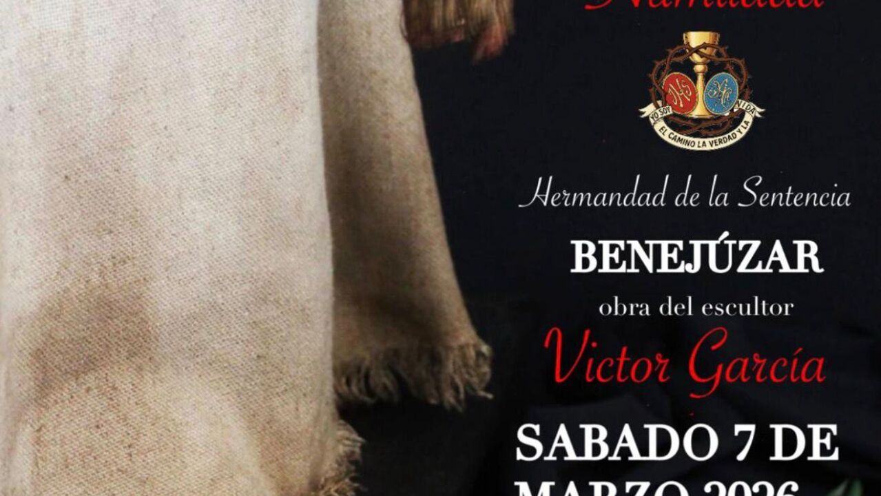 👉La Hermandad de La Sentencia de Benejúzar celebra este sábado 7 de marzo en la parroquia de Nuestra Señora del Rosario los actos de bendición y presentación de su imagen titular, 'Señor de la Humildad'. La obra del imaginero torrevejense Víctor García Villalgordo saldrá en procesión a las calles de la localidad este domingo acompañada por la Agrupación Musical 'Señor del Monte' de Guardamar del Segura