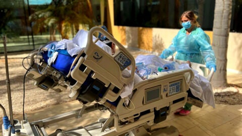 El paciente se traslada en su propia cama acompañado del material preciso para garantizar su seguridad.