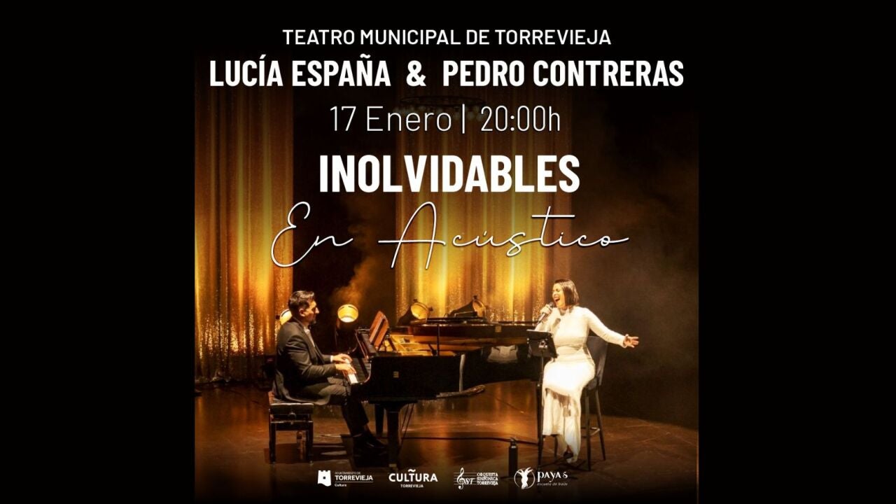 👉 La artista torrevejense Lucía España regresa al Teatro Municipal este sábado 17 de enero con la segunda edición de su 'Inolvidables en Acústico'. Su inconfundible voz estará acompañada de Pedro Contreras al piano para ofrecer un repertorio de canciones que han marcado nuestra vida