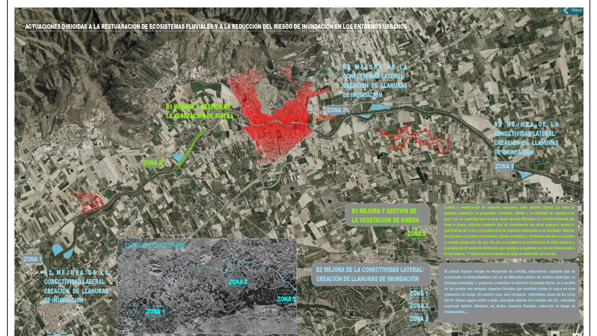 Orihuela tiene un problema con el río en época de crecidas, y en base a los planes de Emergencias y a los planes Hidrológicos, “consideramos que es idóneo plantear esa recuperación de los antiguos meandros del río para zonas de aliviaderos en casos de avenidas”, tal y como ha explicado Víctor Valverde.
