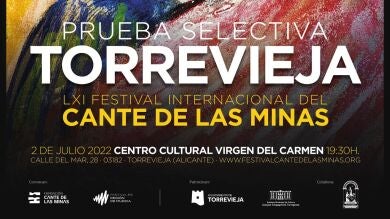El vínculo entre las raíces de Torrevieja y La Unión vuelve a reflejarse en el Festival Internacional del Cante de las Minas. El 2 de julio, la ciudad Alicantina acogerá una de las pruebas selectivas de los concursos de la 61ª edición del Festival. El Centro Cultural Virgen del Carmen será el lugar donde, a las 19:30h, se lleve a cabo esta convocatoria que busca a los mejores artistas del flamenco por toda la geografía española en las modalidades de cante, baile, toque e instrumentista.