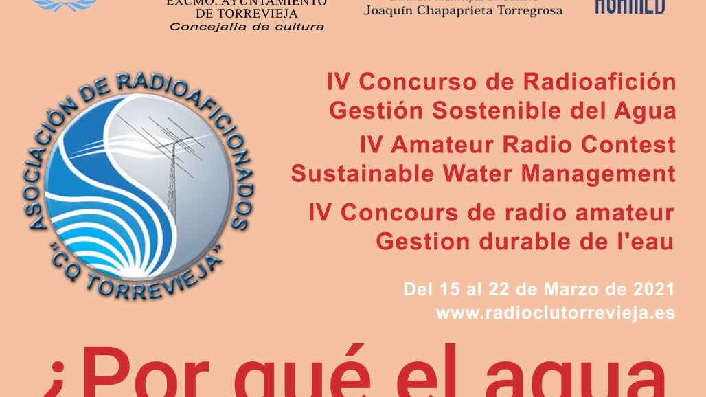 La Asociación de Radioaficionados “CQ Torrevieja”, Agamed y UNwater de Naciones Unidas se unen de nuevo, para poner en marcha el III Concurso “Gestión sostenible del agua” a partir del 15 de marzo. En este momento, cuando el mundo sufre una pandemia con la COVID es primordial el acceso tanto al agua potable, el saneamiento y la higiene, ya que es esencial para evitar agravar más las crisis con enfermedades.