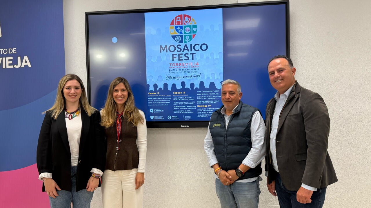 El concejal de Bienestar Social, Convivencia e Integración, Oscar Urtasun, la edil de Participación Ciudadana, Trudy Páez, y la mediadora intercultural del Ayuntamiento de Torrevieja, Rocío Raffaeli, han presentado hoy el ‘I Mosaico Fest’, un gran encuentro intercultural bajo el lema 'Torrevieja somos uno', con el objetivo de fomentar la participación comunitaria, la igualdad de trato hacia las personas migrantes y la prevención del racismo y la xenofobia.