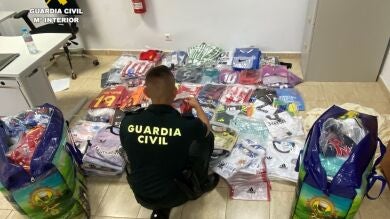 La Guardia Civil ha intervenido 615 camisetas de futbol falsificadas y un centenar de juguetes en un dispositivo contra el top manta en Peñíscola.