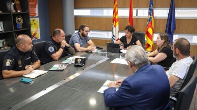 Reunión conjunta de trabajo entre el Ayuntamiento de Onda, la Policía Local y el coordinador del mercado, Juanjo Rodríguez.