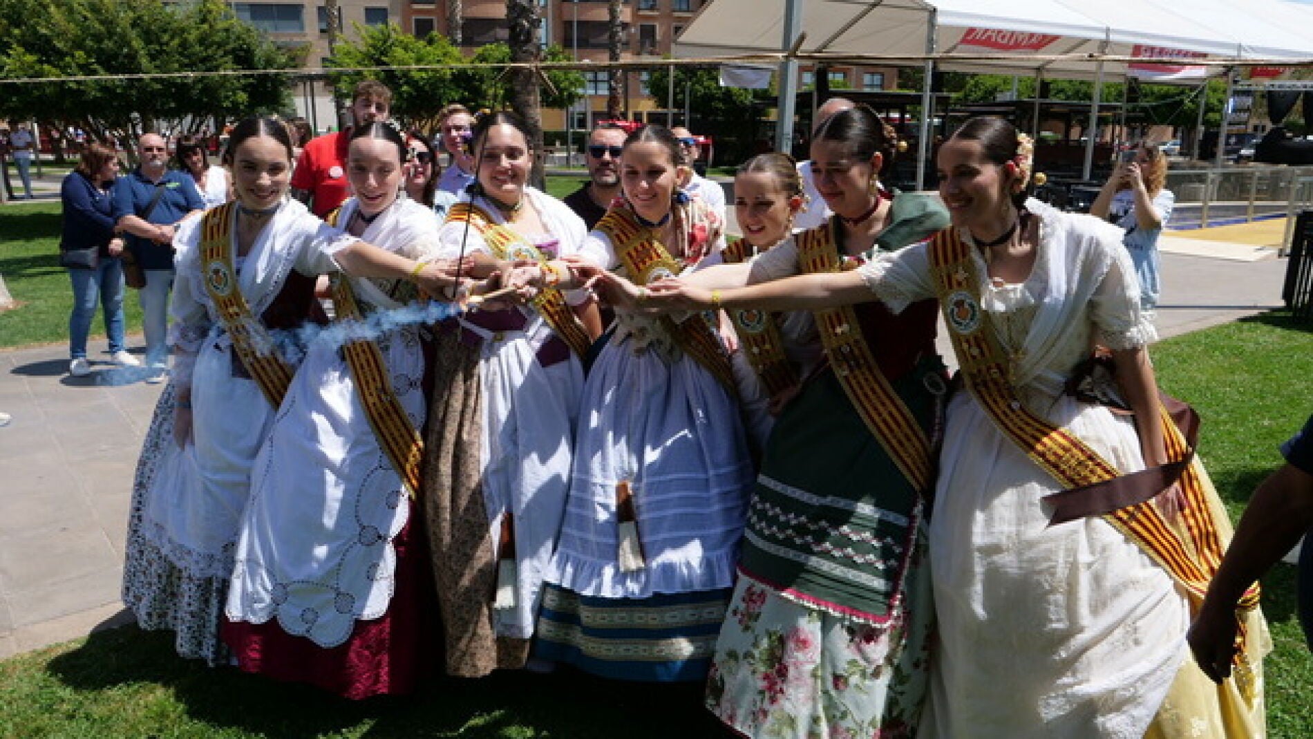 La comitiva festiva, encabezada por la corporación municipal con el alcalde, José Benlloch, junto a la reina y damas, han inaugurado oficialmente el mesón 'El Porrat' con total normalidad, tras el incendio que se ha declarado este madrugada.
