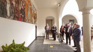 Un cuadro del pintor Damián Retamar homenajea en el Museo Luis de Morales de la ciudad de Badajoz a las víctimas de la Covid-19 y a quienes luchan contra ella, y que incluyen tanto el personal sanitario en una posición central, como a distintos trabajadores de servicios esenciales así como a las víctimas. Se trata de una obra de más de cinco metros de ancho y dos metros de alto que se expondrá permanentemente en dicho museo; y en el que la inspiración nació durante el confinamiento. Presentes, entre otros, el presidente de la Junta de Extremadura, Guillermo Fernández Vara, y el alcalde de Badajoz, Francisco Javier Fragoso, acompañados del director general de Fundación CB, Emilio Vázquez.
