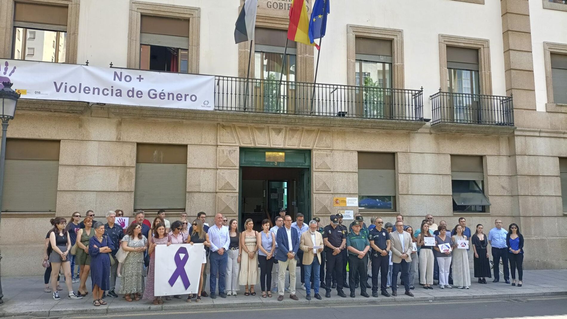 El subdelegado del Gobierno en Cáceres, José Antonio García; el alcalde Rafael Mateos; miembros de la corporación municipal; representantes de Fuerzas y Cuerpos de Seguridad del Estado y ciudadanos en general se han sumado a esta concentración que ha tenido lugar en las puertas de la Subdelegación del Gobierno en la avenida Virgen de la Montaña.