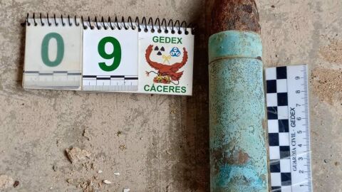 El propietario de una vivienda de la localidad cacereña de Cañaveral ha hallado en la mañana de este martes en el patio un proyectil balístico de 37 milímetros.