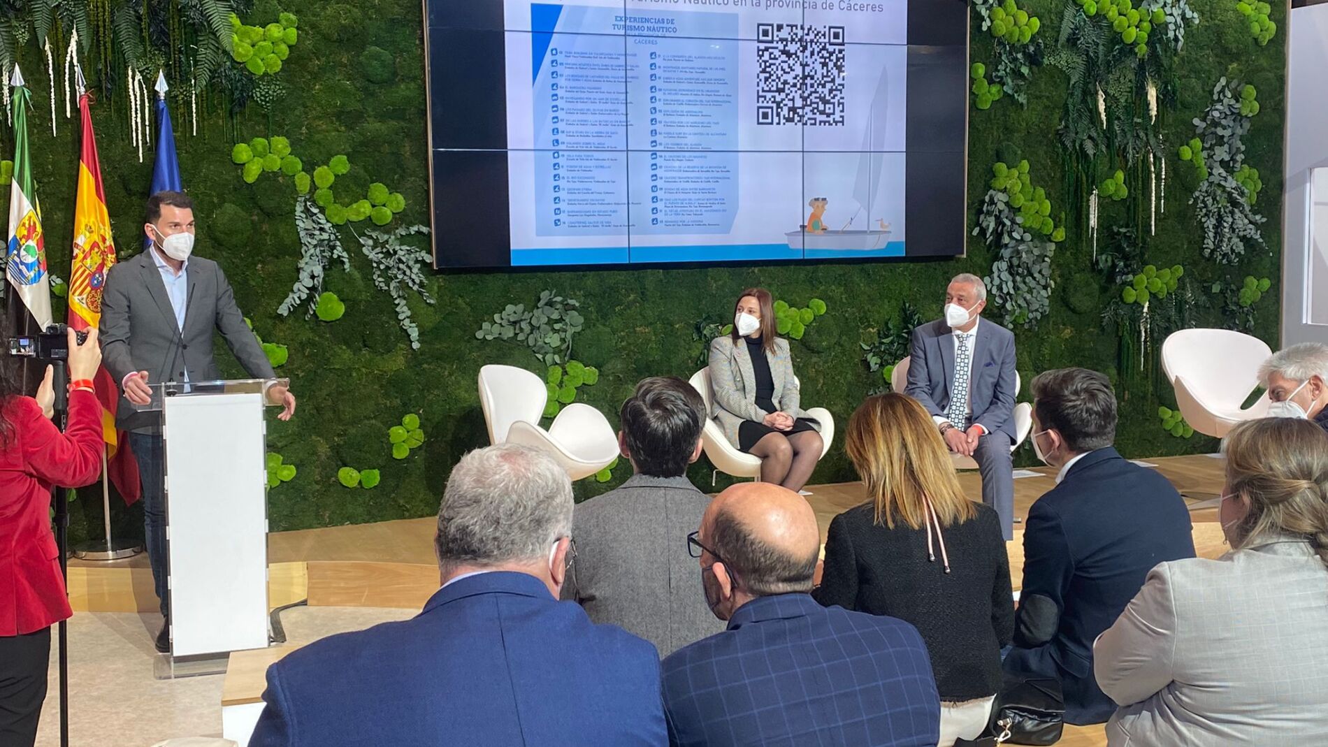 La Diputación de Cáceres ha presentado este miércoles en la Feria Internacional de Turismo (Fitur), que se celebra en Madrid hasta el domingo día 23, su oferta turística de láminas de agua como destino de deportes náutico, pesca deportiva o paseos en barcos ya que, no en vano, la provincia cacereña cuenta con 6.000 hectómetros cúbicos de agua embalsada, 300 kilómetros de ríos navegables y 40 zonas de baño autorizadas.
