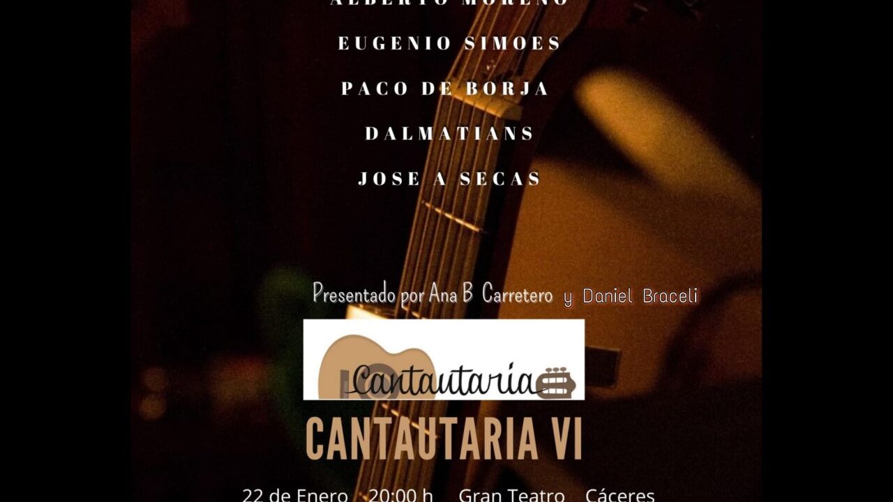 La sexta edición de 'Cantautaría' reunirá el 22 de enero en el Gran Teatro de Cáceres a nueve cantautores con el objetivo de apoyar y fomentar la canción de autor, y con carácter solidario a favor de Aedex, Asociación de Epilepsia de Extremadura.