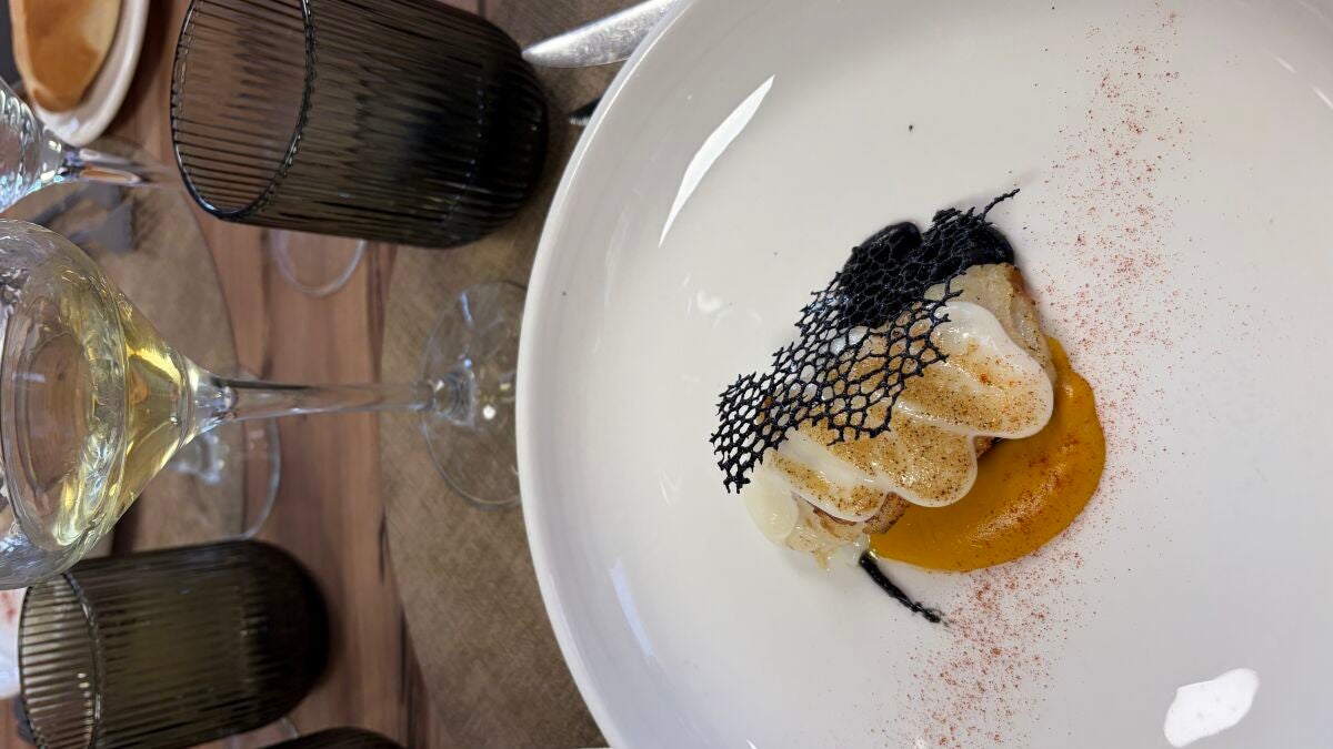 El pasado lunes realizó una demostración del variado menú degustación que podrán disfrutar los cacereños. Como entrante, un salmorejo de tomate ecológico de Plasenzuela con manzana verde, para aportar un toque de frescura. El primer pase era un gambón rebozado y crujiente con guacamole de guarnición y un ali-oli muy suave. Posteriormente, ofrecieron unas croquetas líquidas de patatera y crema de foie.