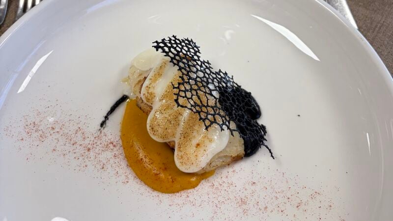 El pasado lunes realizó una demostración del variado menú degustación que podrán disfrutar los cacereños. Como entrante, un salmorejo de tomate ecológico de Plasenzuela con manzana verde, para aportar un toque de frescura. El primer pase era un gambón rebozado y crujiente con guacamole de guarnición y un ali-oli muy suave. Posteriormente, ofrecieron unas croquetas líquidas de patatera y crema de foie.