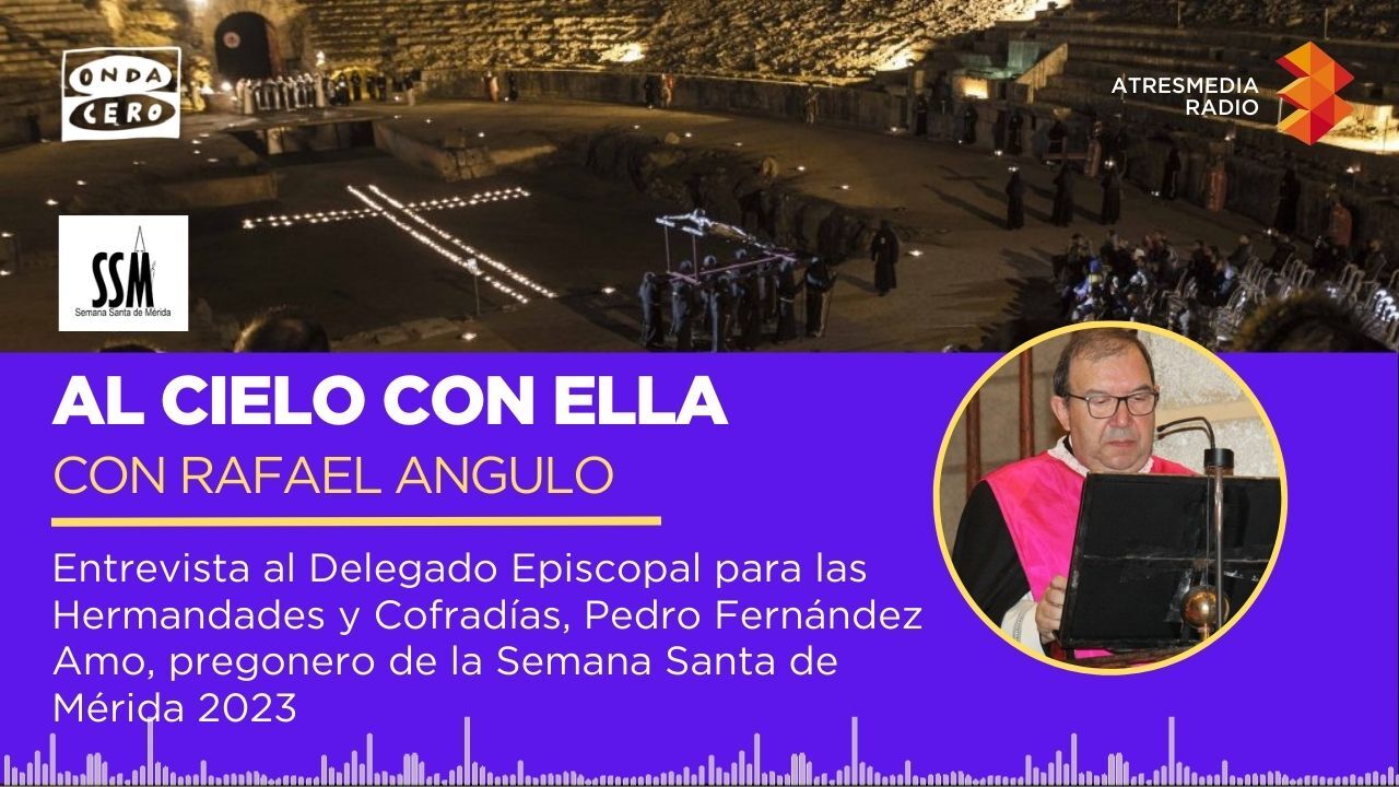 Con Rafael Angulo y el delegado Episcopal para las Hermandades y Cofradías, Pedro Fernández Amo, pregonero de la Semana Santa de Mérida 2023