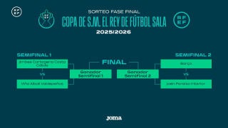La Copa del Rey de fútbol sala ya conoce los emparejamientos de semifinales para la ‘Final Four’ que tendrá lugar en el Pabellón Multiusos de la Ciudad de Cáceres los días 23 y 24 de mayo. El sorteo, celebrado en la Ciudad del Fútbol de Las Rozas ha deparado los siguientes duelos: