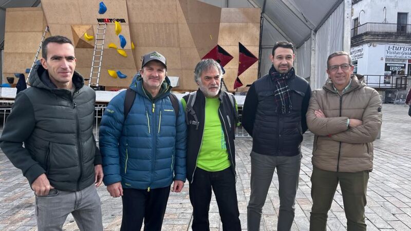 Las instalaciones han sido visitadas esta mañana por el concejal de Deportes, Emilio Borrega, junto a representantes de la Federación Extremeña de Montaña y Escalada (en representación también de la federación nacional), de la Dirección General de Deportes de la Junta de Extremadura y de la empresa organizadora del evento deportivo, B3Sportaiment.