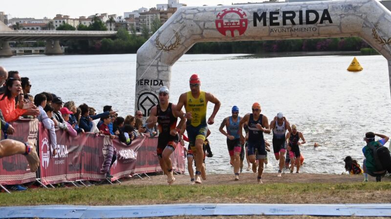 El segmento de natación se llevará a cabo en las aguas del río Guadiana, junto al monumento de las 7 Sillas. Los deportistas tendrán que dar una vuelta a un circuito delimitado por bollas para afrontar la primera transición.