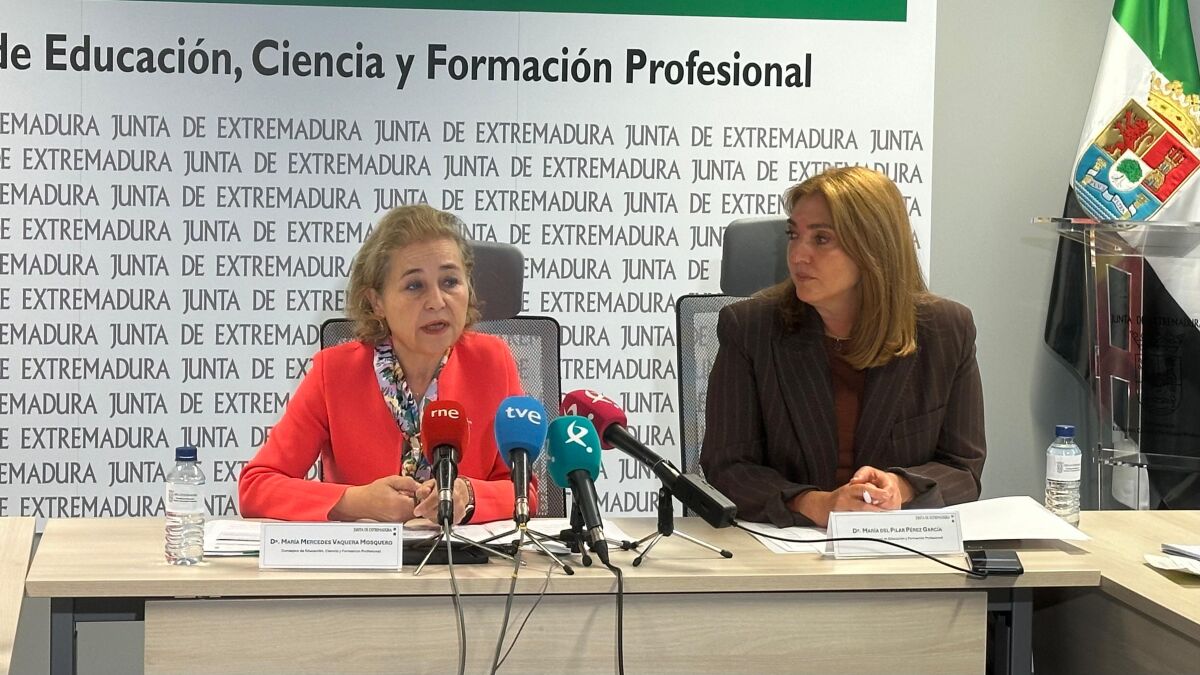 Mercedes Vaquera ha realizado estas declaraciones en una rueda de prensa este jueves en Mérida en la que ha dado a conocer los detalles del Procedimiento General de Admisión de alumnos para el curso escolar 2026 - 2027 en Extremadura y en la que ha estado acompañada por la secretaria general de Educación y Formación Profesional, María del Pilar Pérez.