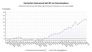 En términos anuales, Extremadura es la tercera comunidad donde más suben los precios, tras Castilla-La Mancha (12,6%) y Castilla y León (11,8%), Extremadura (11,5%). En el otro extremo se sitúan Cataluña (10,2%), Cantabria (10,1%), Ceuta (9,8%), Canarias (9,5%) y Madrid (9,3%).