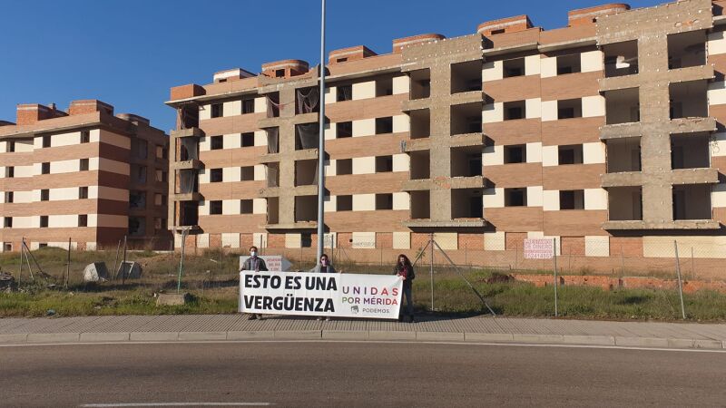 Sin embargo, no se tuvo en cuenta y desde Unidas denuncian que “la consecuencia real de esta situación es la creación de un espacio, en el que centenares de viviendas se encuentran a medio construir, sin que en los últimos ocho años se haya tomado ninguna iniciativa por parte del ayuntamiento de Mérida o de la Junta de Extremadura para poner en valor el espacio en construcción, la terminación de las obras por parte de cualquier promotor privado, o cualquiera otra consideración que permitiera un mínimo aprovechamiento de este espacio, que a estas alturas resulta desolador”.