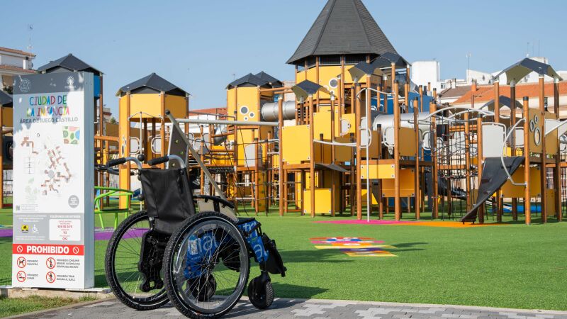 Se dispone de mobiliario accesible, apoyos isquiáticos, aseos, señalética, al tiempo que se ha actuado igualmente en las aceras del entorno del parque y espacios de conexión anexos. La accesibilidad también está presente en los equipamientos de juego. Se instalan columpios y estructuras adaptadas que permiten la participación conjunta de niños con y sin discapacidad, mesas inclusivas y áreas de juego donde la diversión no entiende de limitaciones.