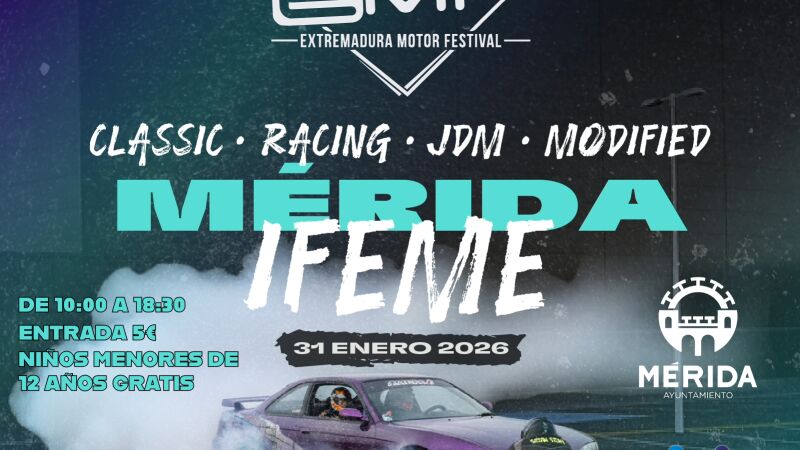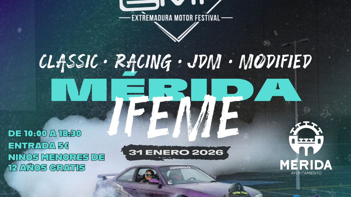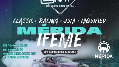 El Extremadura Motor Festival (EMF) 2026 ofreceré este sábado, 31 de enero, en Mérida, un amplio programa de actividades para los amantes de este sector, como una exposición de 300 vehículos exclusivos, simuladores, shows, food trucks y ludoteca infantil.