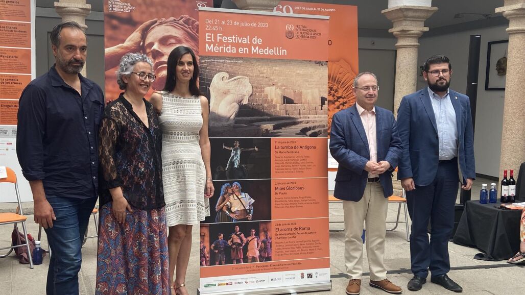 La programación de esta extensión del Festival de Mérida, que alcanza su décima edición, se ha presentado este miércoles con la presencia del director del certamen, Jesús Cimarro; la secretaria general de Cultura en funciones, Miriam García Cabezas; el alcalde de Medellín, Rafael Mateos; la directora y coautora de 'La tumba de Antígona', Cristina D. Silveira, y el director y productor David Pérez.