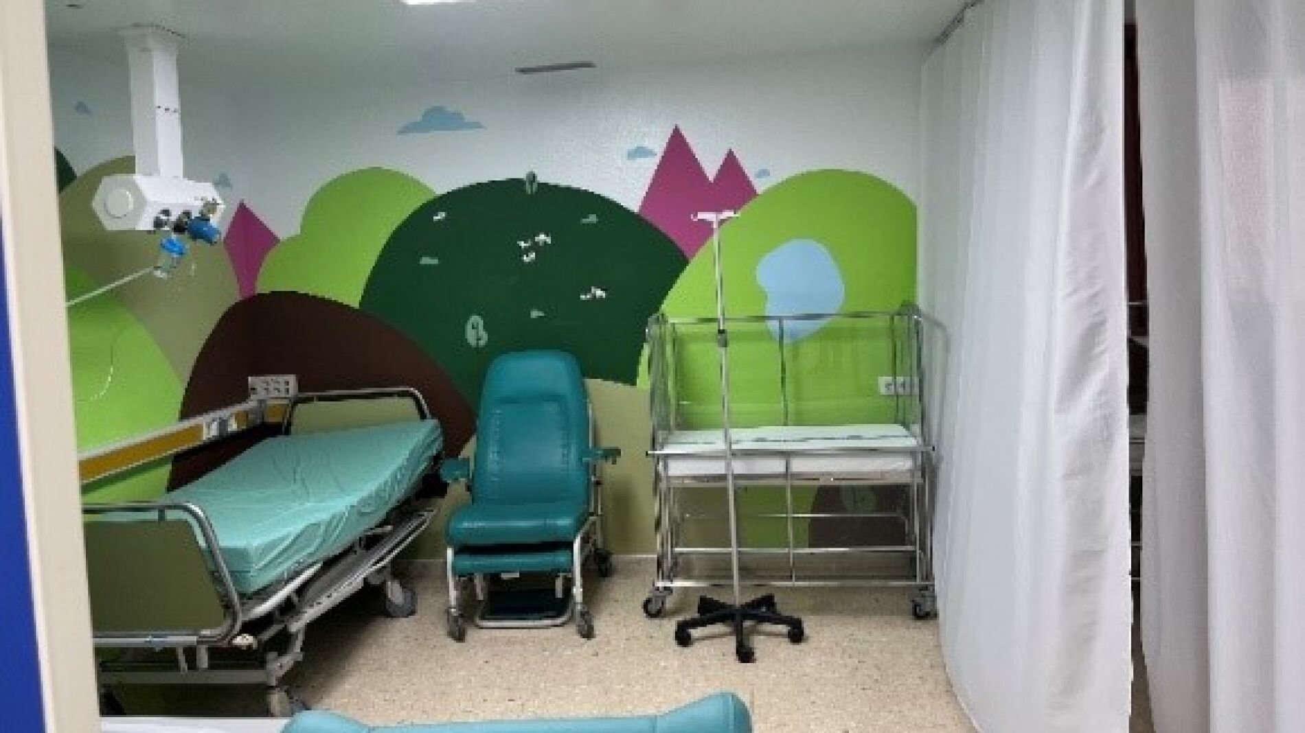 En el caso de la sala de observación pediátrica, se unificado también con la decoración infantil de la zona además de colocar cortinas para independizar los espacios de la sala.