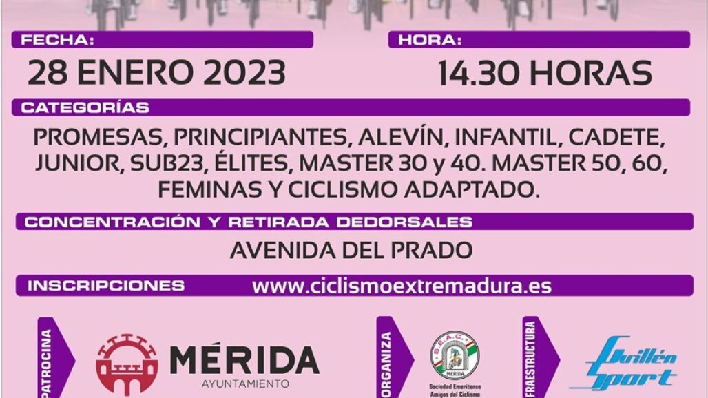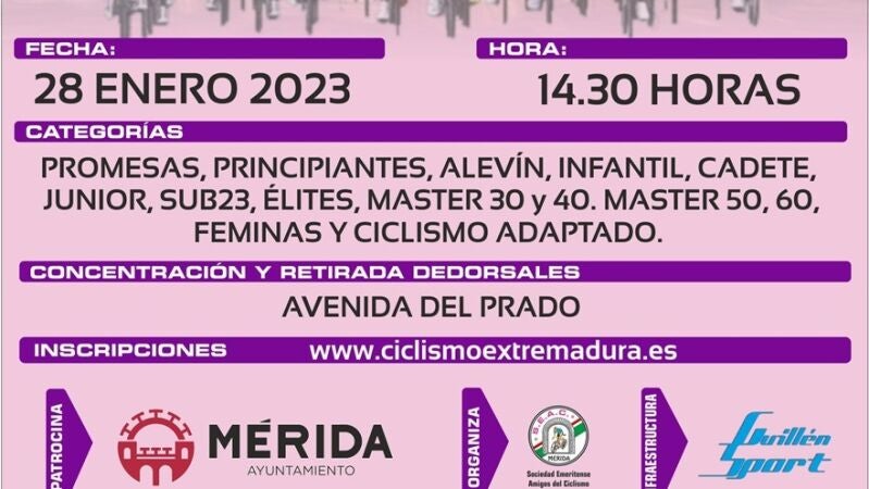 El futuro del ciclismo extremeño se da cita en Mérida el sábado, 28 de enero, en la prueba que abre el calendario a nivel nacional en carretera. “Este premio demuestra que la ciudad está preparada para acoger cualquier tipo de evento deportivo y de primer nivel” señala el delegado de deportes, Felipe González.