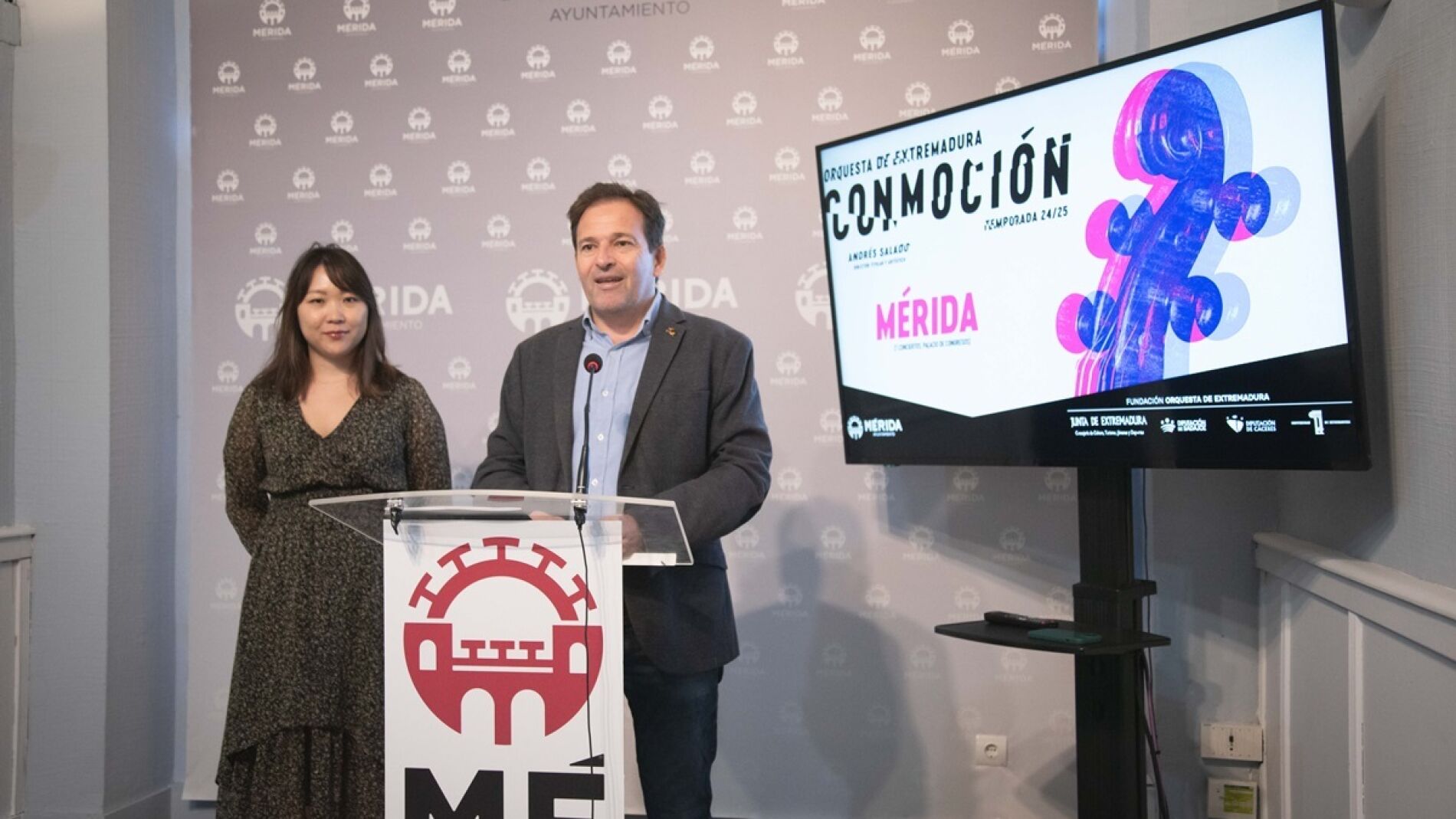 La directora geerante de la Orquesta de Extremadura, Hae Won Oh, y el delegado de cultura, Antonio Vélez, han presentado el ciclo de conciertos para esta temporada 2024-25, que comenzará el próximo 3 de octubre con "exótico combinado colombiano" con Santiago Cañón-Valencia y Juan Pablo Valencia, solista y director, abordando el Concierto para violonchelo n.º 1 de Shostakóvich, junto la Sinfonía n.º 2 de Chaikovski y el estreno en España de 'Reflejo Sinfónico' del también colombiano compositor Jorge Pinzón.