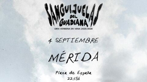Después de Zango, a las 22 15 “tendremos el grupo estrella “Sanguijuelas del Guadiana”, y lo decimos porque es verdad que está teniendo una trayectoria magnífica, solo hay que ver su éxito el pasado fin de semana en el festival Sonorama”. El grupo Sanguijuelas de Guadiana es originario de Casas de Don Pedro. Se formaron cuando eran jóvenes y su música refleja sus experiencias en la vida rural, combinando con elementos de lo rural y lo contemporánea, la rebeldía juvenil y la tradición. Han lanzado su álbum titulado La Rebolá, que presenta una línea de tiempo desde la infancia hasta la adultez, incluyendo temas de rock and roll y elementos electrónicos.