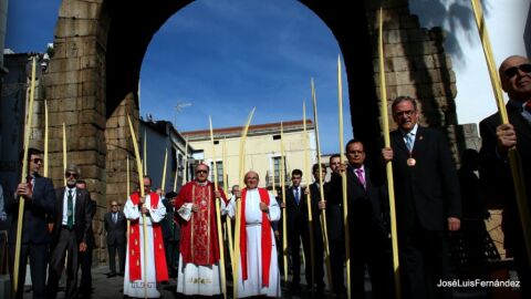 A las 11:30 horas: bendición y procesión litúrgica de las Palmas desde la Iglesia de El Carmen hasta la Concatedral de Santa María. Salida desde la Iglesia de El Carmen hasta la Concatedral por Almendralejo, Travesía de Almendralejo, Plaza de la Constitución, Alvarado, Trajano, Félix Valverde Lillo y Plaza de España.