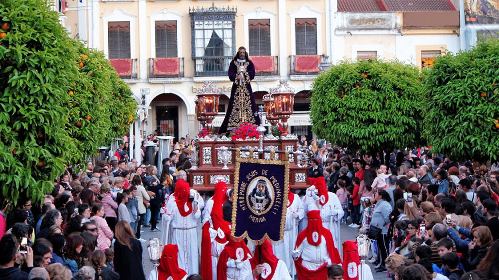 Recorrido: Plaza de España, Santa Julia, Concepción, Cárdenas, Moreno de Vargas, Félix Valverde Lillo, Delgado Valencia (tramo en silencio), Puerta de la Villa, Berzocana, San José, Sagasta, Templo de Diana, Romero Leal, Plaza del Rastro, Plaza de España. Una vez dentro de la Concatedral, se procederá al canto de la Salve a Nuestra Señora del Rosario como punto final a la Estación de Penitencia.