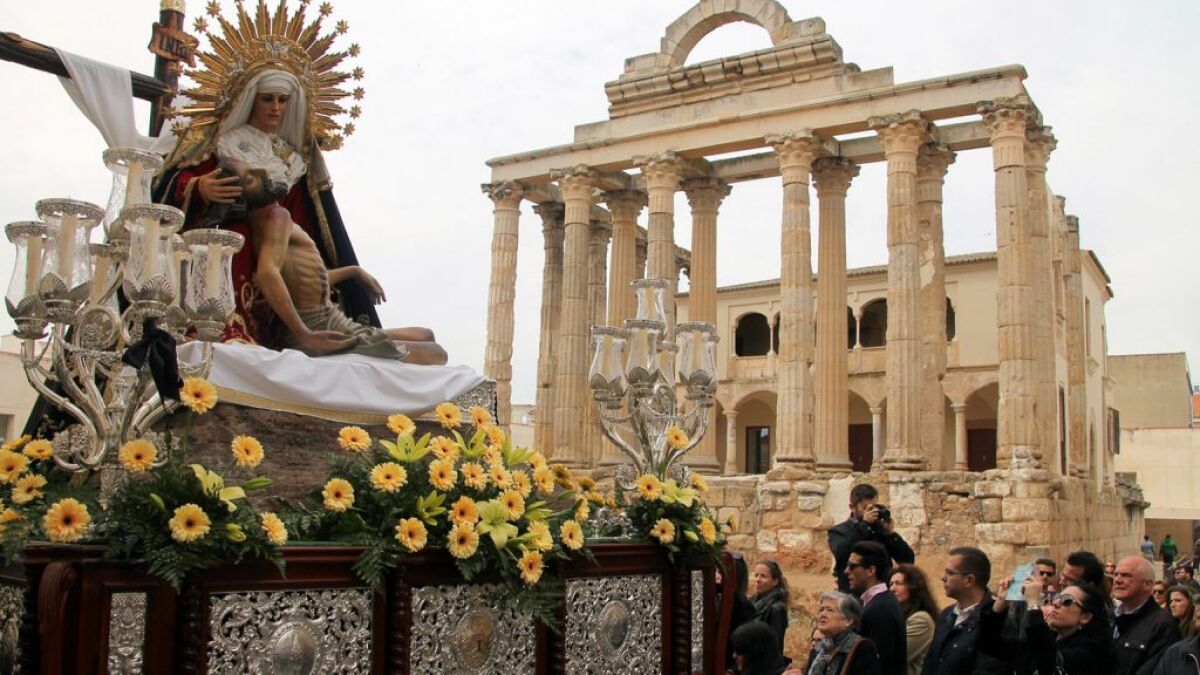 Recorrido: Plaza de España, Plaza del Rastro, Romero Leal, Templo de Diana, Sagasta, José Ramón Mélida, Plaza de Margarita Xirgú. Entrada al recinto del Anfiteatro (donde se rezan las Estaciones del Vía Crucis). Vuelta por el mismo recorrido: Plaza de Margarita Xirgú, José Ramón Mélida, Sagasta, Romero Leal, Templo de Diana, Plaza del Rastro, Plaza de España.