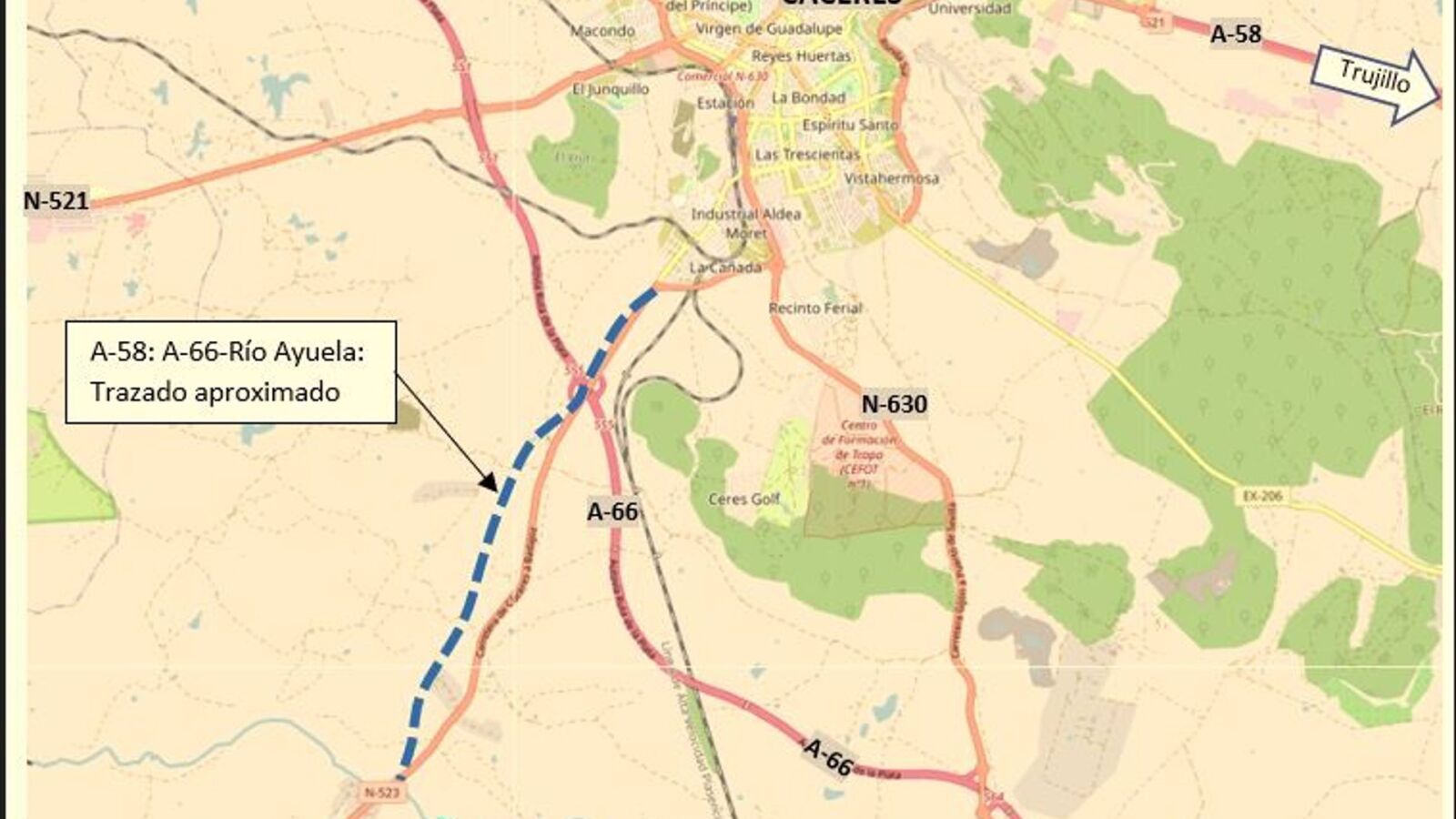 Se trata de un tramo de 13,5 kilómetros de longitud, que tiene su inicio en las proximidades de la ciudad de Cáceres, enlaza con la A-66, y discurre por los llanos de Cáceres, pasando sobre los ríos Salor y Ayuela, según explica el Ministerio de Transporte en nota de prensa.