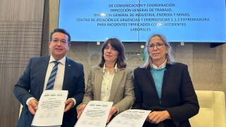 El secretario general de Interior, Emergencias y Protección Civil de la Junta, Fernando Manzano, la directora general autonómica de Trabajo, Pilar Bueno, y la directora general regional de Industria, Energía y Minas, Raquel Pastor, han sido los encargados de rubricar este nuevo protocolo para la activación y coordinación de los recursos de emergencia necesarios para responder a los accidentes laborales de manera "eficiente".