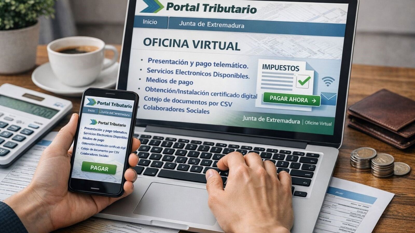 La Oficina Virtual Tributaria de la Junta de Extremadura, accesible desde la Sede Electrónica para el pago tributario, ha registrado un aumento de presentaciones electrónicas hasta llegar al 45 por ciento del total.