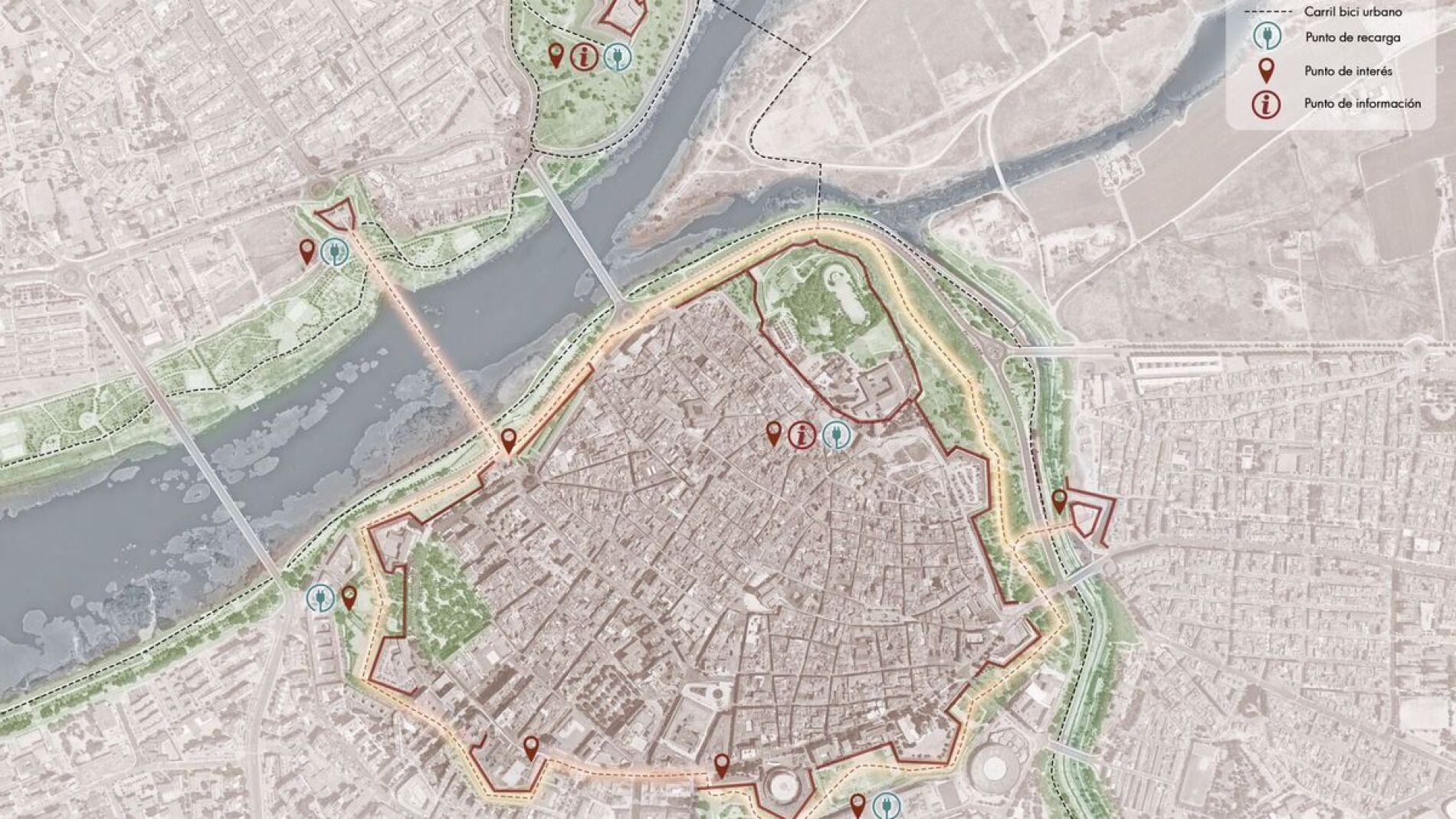 El proyecto de Badajoz, requiere una inversión de 3 millones de euros (aunque finalmente solo llegarán 2 millones), y consiste en construir un sendero mixto siguiendo el trazado de la muralla y sus baluartes y conectado con la Alcazaba, con un carril para las bicicletas y otro para el paseo peatonal.