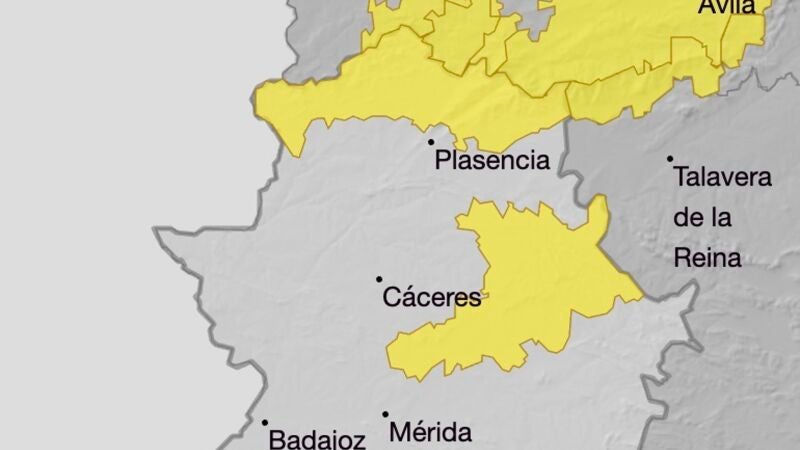 La misma, para estas dos últimas zonas cacereñas en las cuales se prevé una precipitación acumulada de 15 litros por metro cuadrado en una hora se mantendrá activa entre las 06,00 y las 18,00 horas del lunes.