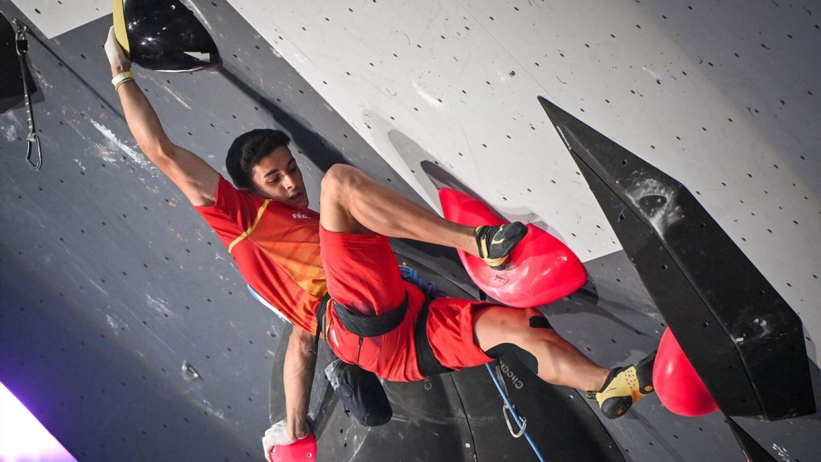 Estos muros se utilizarán para la prueba de bulder y están diseñados según las características de los circuitos a nivel internacional. También se está instalando el muro de velocidad, con 17 metros de altura.