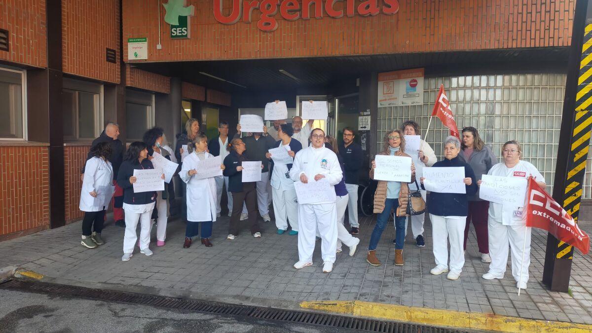 CCOO ha organizado una concentración a las puertas del Hospital Campo Arañuelo de Navalmoral de la Mata exigiendo al SES un conjunto de medidas urgentes para dar solución a los problemas en las condiciones laborales que sufren los celadores y celadoras de este hospital. Estas medidas pasan, fundamentalmente, por el refuerzo del personal y la renovación de los medios de los que disponen.