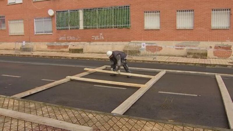 Los trabajos técnicos en el edificio de la calle Río Tíber de Cáceres, del que ocho familias tuvieron que se desalojadas en la noche del domingo por riesgo de derrumbe de la fachada, han comenzado este lunes con el apuntalamiento de esa fachada para garantizar la seguridad de la misma.