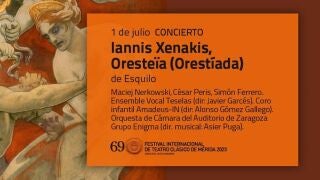 Este concierto 'Oresteïa' (Orestíada), de Iannis Xenakis, sobre textos de Esquilo, estará dirigido por Asier Puga y cuenta con la colaboración del Gobierno de Aragón.