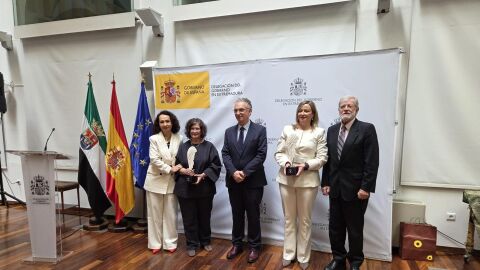 La Delegación del Gobierno en Extremadura ha entregado este jueves, día 5, los galardones 'Mujeres que rompen', que en esta ocasión han distinguido a la expresidenta de la Asamblea de Extremadura Blanca Martín, por su compromiso por la igualdad institucional, y a la presidenta de la fundación que lleva su nombre, Magdalena Moriche, por su compromiso por la inclusión de personas con inteligencia límite y discapacidad intelectual ligera.
