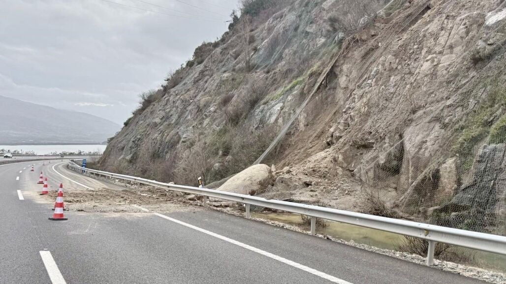 Un desprendimiento de rocas y tierra ha provocado el corte total del tráfico en la autovía A-66, entre los kilómetros 427 y 436, en sentido Sevilla, mientras se ejecutan las labores de mantenimiento y limpieza de la vía.