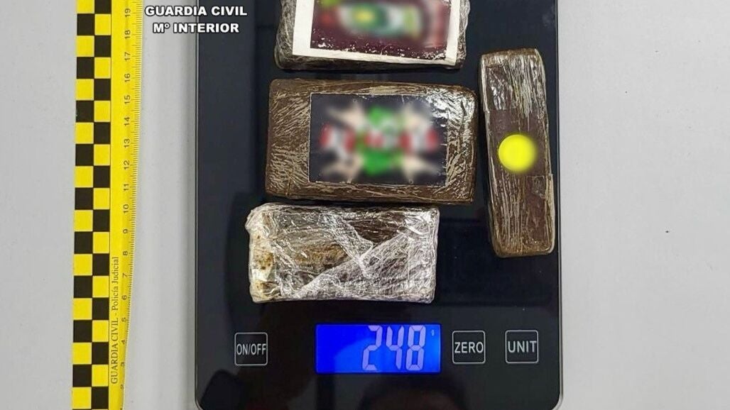 Así, y tras llevar a cabo un registro más exhaustivo, los guardias civiles localizaron, entre las pertenencias del identificado, una bolsa que contenía en su interior cuatro grandes tabletas de una sustancia resinosa de color marrón, según relata la Guardia Civil en nota de prensa.