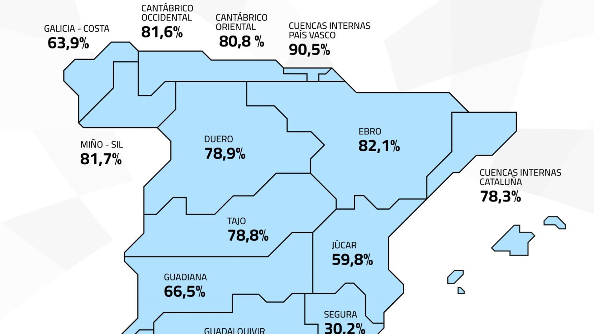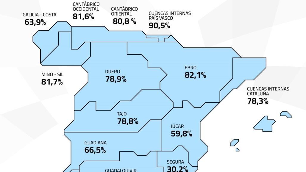 Por su parte, la cuenca del Guadiana alberga un total de 6.340 hm3, también por encima de la media de los diez últimos años, que es de 4.536 hm3.