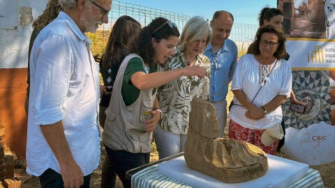 La consejera ha recordado que Casas del Turuñuelo no ha dejado de asombrar al mundo con descubrimientos que están reescribiendo la historia del Mediterráneo Occidental, como las representaciones humanas descubiertas en campañas anteriores o la placa de pizarra con un posible abecedario paleohispánico meridional.