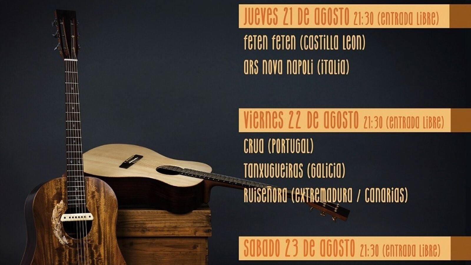 El programa de este certamen que nació en 1995 lo abrirá el jueves, 21 de agosto, los castellano-leoneses Fetén Fetén, el proyecto musical de Jorge Arribas y Diego Galaz formado en el año 2009, y los italianos Ars Nova Napoli, que han llevado su música por festivales y escenarios de distintos países de Europa.